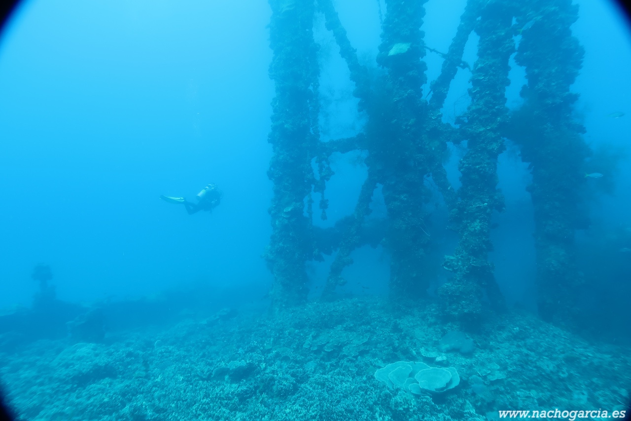 Precisamente por esa limitación del clima pudimos realizar algunas inmersiones en pecios de la guerra del Pacífico... y he de decir que el Iro maru se merecía más de una inmersión...