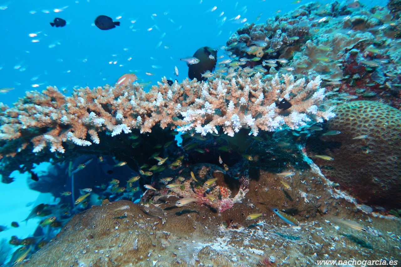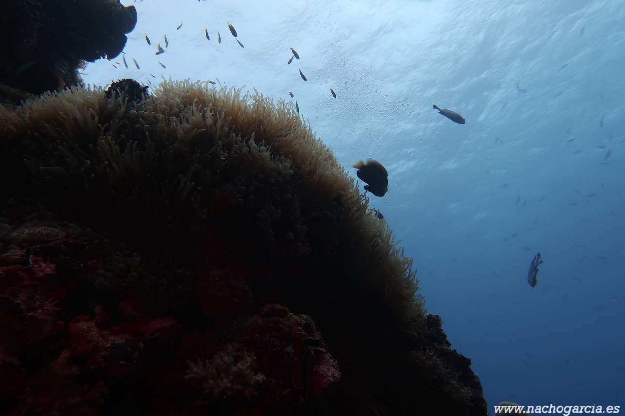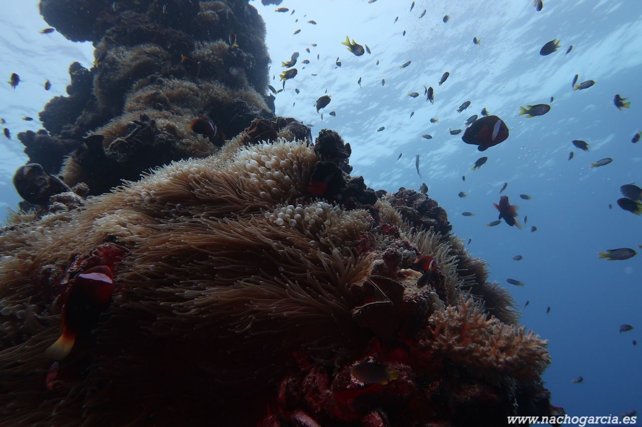 La temperatura del agua es 29ºC una auténtica delicia. Nosotros además tuvimos la suerte de que al ser temporada baja realizamos todas las inmersiones con el guía, con lo que pudimos organizar las salidas a la carta y unicamente con las limitaciones que nos impuso el viento y que nos obligó a realizar inmersiones en la zona interior del arrecife.
