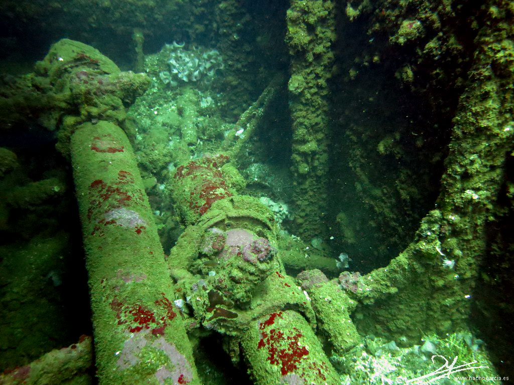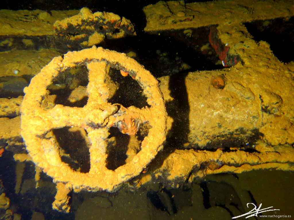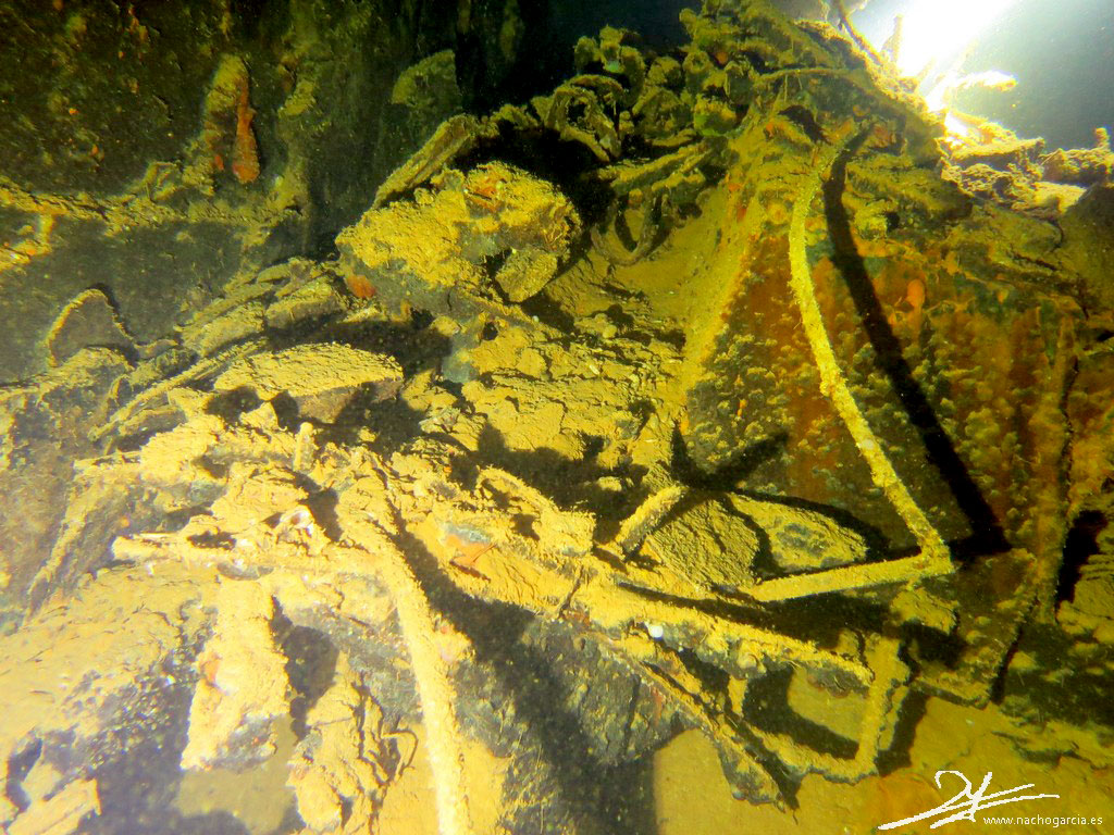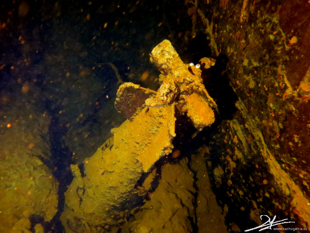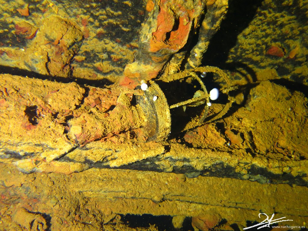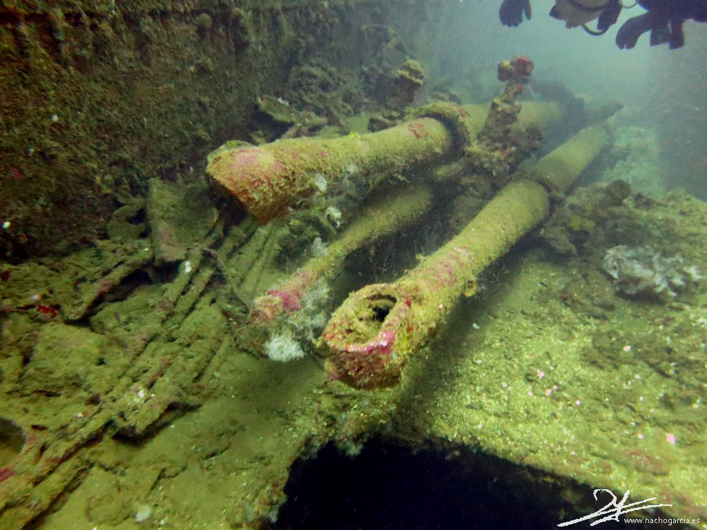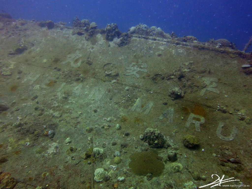 Este pecio se hizo famoso en los 70 cuando Jacques Cousteau lo mostró en televisión, con su nombre escrito en inglés y japonés.